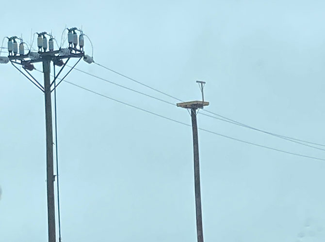 I had to remove the old nest from switch pole and set new nesting platform next to it.